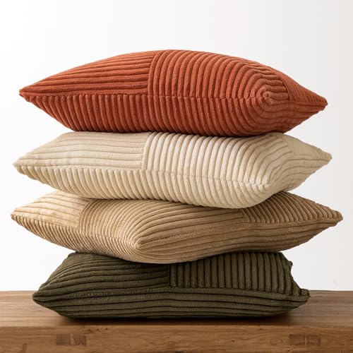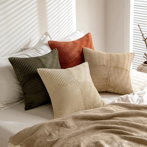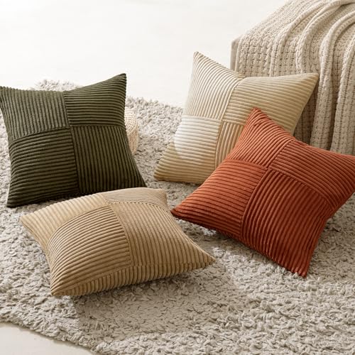 MIULEE 4er Set Kordsamt Kissenbezug Patchwork Kissenhülle Weich Dekokissen Modern Unsichtbarer Reißverschluss Sofakissen Zierkissen für Sofa Wohnzimmer Schlafzimmer Braun Grün Serie 40×40 cm