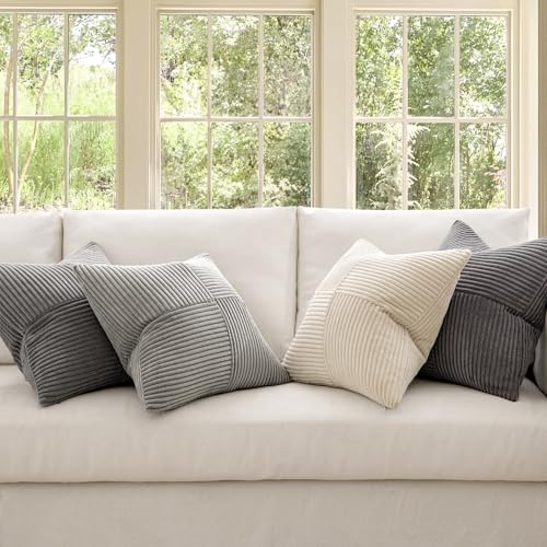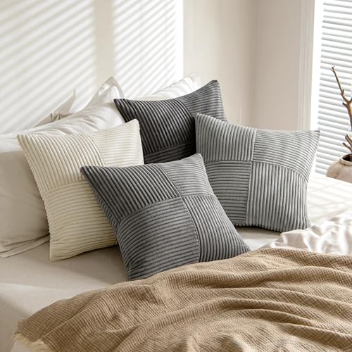 MIULEE 4er Set Kordsamt Kissenbezug Patchwork Kissenhülle Weich Dekokissen Modern Unsichtbarer Reißverschluss Sofakissen Zierkissen für Sofa Wohnzimmer Schlafzimmer Grau Serie 40×40 cm