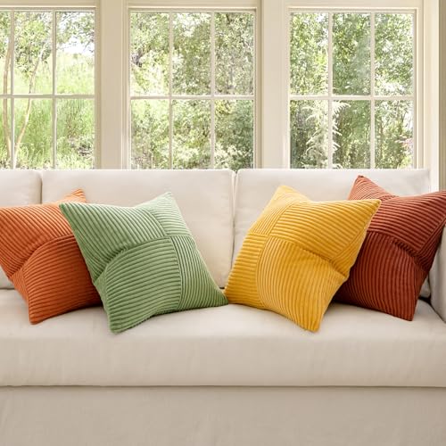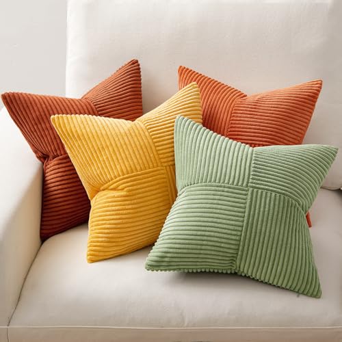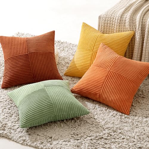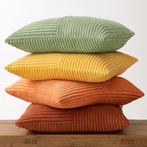 MIULEE 4er Set Kordsamt Kissenbezug Patchwork Kissenhülle Weich Dekokissen Modern Unsichtbarer Reißverschluss Sofakissen Zierkissen für Sofa Wohnzimmer Schlafzimmer Orange Grün Serie 50×50 cm