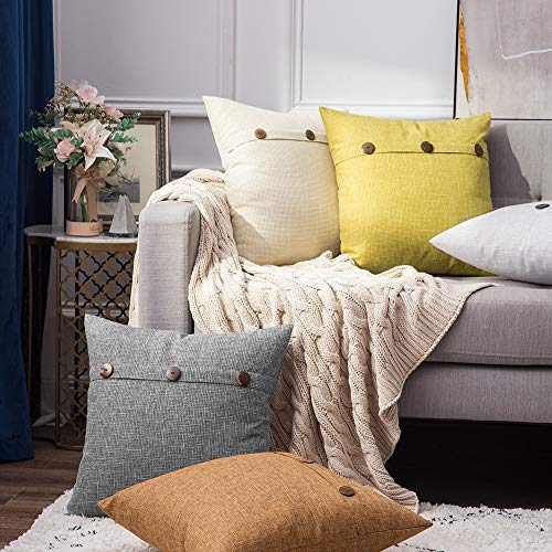 MIULEE Kissenbezug Dekorative Kissenhülle Leinenoptik mit Knöpfe Kissenbezüge Dekokissen Sofakissen Zierkissen für Sofa Schlafzimmer Wohnzimmer 2er Set 40×40 cm Milchweiß