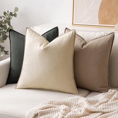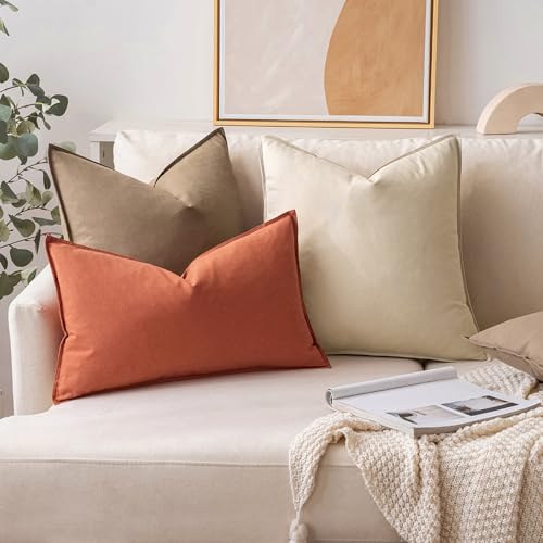 MIULEE Kissenbezug Kissenhülle Dekokissen Leinen Baumwolle Dekorative Kissenbezüge Waschbar Sofakissen mit Verstecktem Reißverschluss für Wohnzimmer Schlafzimmer Sofa 2er Set 45×45 cm Beige
