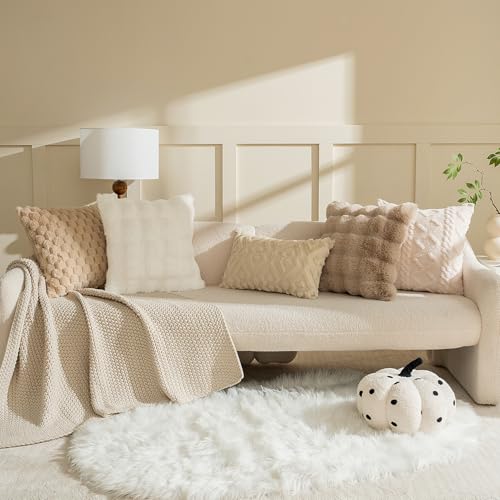 Einzigartiger europäischer Stil: Einfacher einfarbiger Kissenbezug, mit wellenförmigem Plüsch auf der Vorderseite, genießen Sie den Komfort und die Weichheit, die Plüsch bringt.