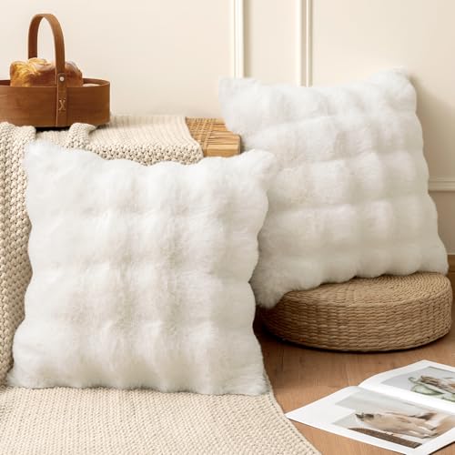 MIULEE Kissenbezug Weiß 40×40 cm 2er Set Künstlich Pelz Kissenbezüge Kuschelkissen Welle Kissenhülle Dekokissen Dekorative Weiche Zierkissen Sofakissen für Wohnzimmer Schlafzimmer Balkon