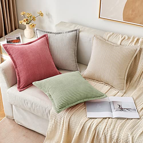 MIULEE Kordsamt Kissenbezug Weiche Kissenhülle Dekorative Sofakissen Quadratische Dekokissen Moderne Zierkissenbezug Gestreifte Kissenbezüge für Wohnzimmer Schlafzimmer 2 Stück 40×40 cm, Bohnengrün