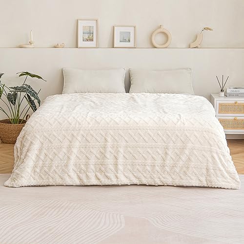 STYLISCHES DESIGN: Das einzigartige und stilvolle dreidimensionale Rautenmuster und das Sherpa-Fleece-Material bieten Ihnen verschiedene Weichheitsgefühle, die Ihre Schlafqualität verbessern und Ihnen ein extrem komfortables Gefühl geben.