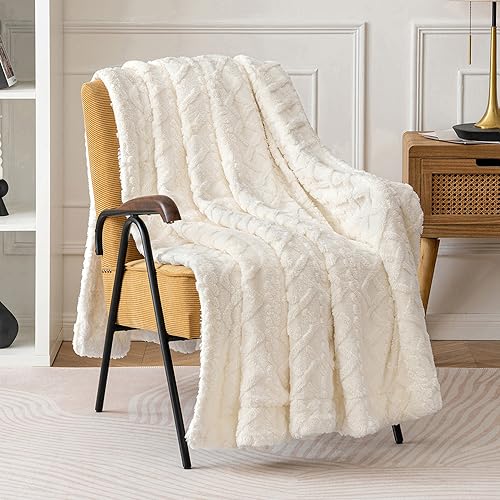 MIULEE Kuscheldecke Decke Sofa Wohndecke 130×150 cm Lammdecke Bettdecke Gestreifte Flauschige Weiche Decke Sofaüberwurf Couchdecke für Bett Sofa Wohnzimmer Helles Weiß