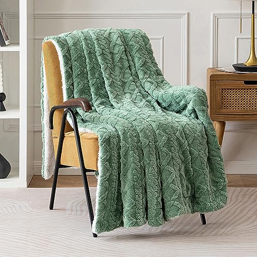 MIULEE Kuscheldecke Decke Sofa Wohndecke 150×200 cm Lammdecke Bettdecke Gestreifte Flauschige Weiche Decke Sofaüberwurf Couchdecke für Bett Sofa Wohnzimmer Helles Matcha Grün