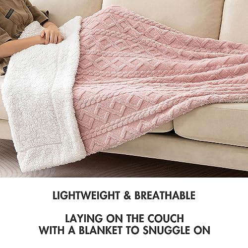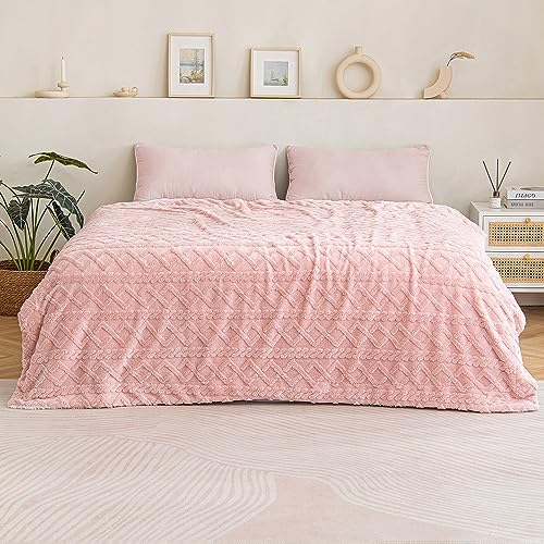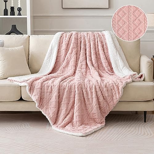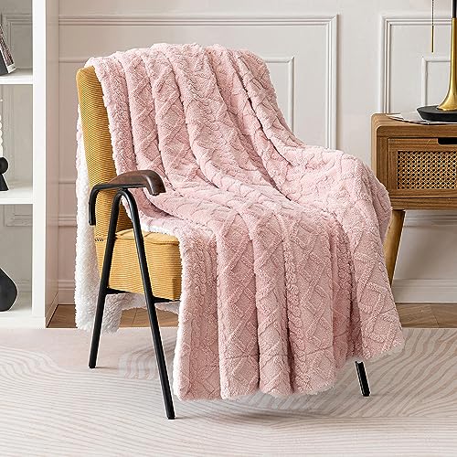 MIULEE Kuscheldecke Decke Sofa Wohndecke 150×200 cm Lammdecke Bettdecke Gestreifte Flauschige Weiche Decke Sofaüberwurf Couchdecke für Bett Sofa Wohnzimmer Helles Rosa