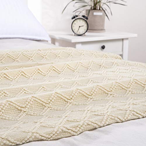 DESIGN: Rautenmuster, zarte geometrische Muster, 100% Acryl, klassisches Strickdesign, einfach und elegant sowie exquisite Handwerkskunst können Ihr Bett, Ihr Zimmer, Ihr Sofa besser dekorieren und Ihrem Zuhause Wärme verleihen.