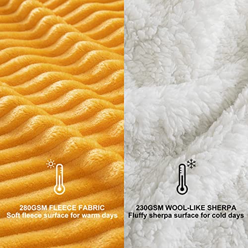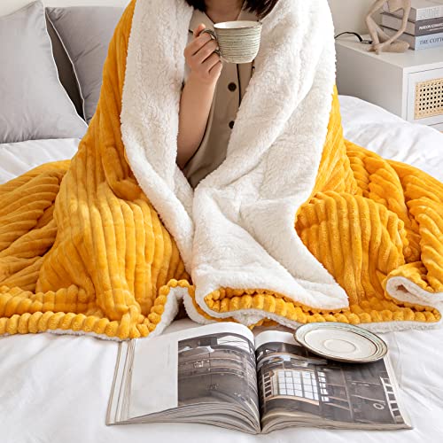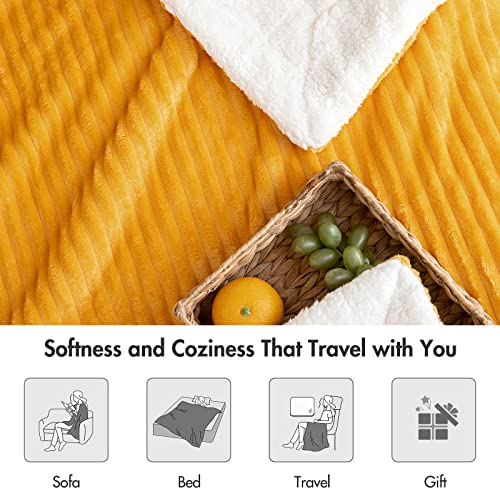 MIULEE Kuscheldecke Dicke Wohndecke Lammdecke Bettdecke Gestreifte Flauschige Weiche Decke Sofaüberwurf Couchdecke für Bett Sofa Wohnzimmer 150×200 cm Orangegelb
