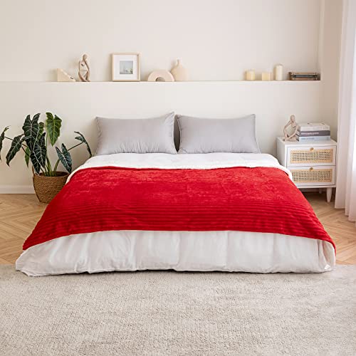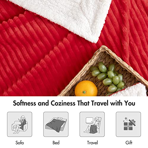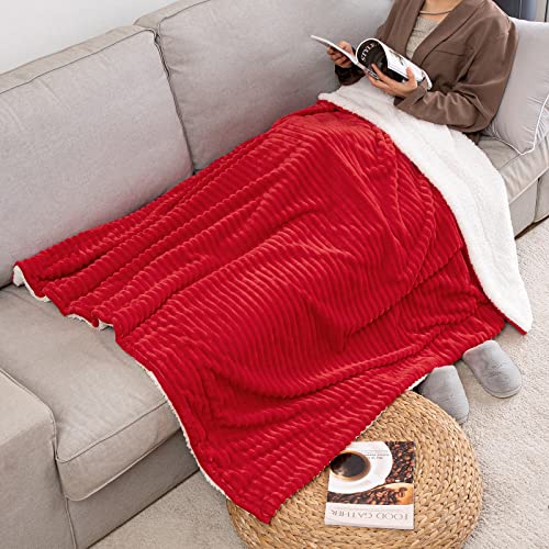 MIULEE Kuscheldecke Dicke Wohndecke Lammdecke Bettdecke Gestreifte Flauschige Weiche Decke Sofaüberwurf Couchdecke für Bett Sofa Wohnzimmer 150×200 cm Rot