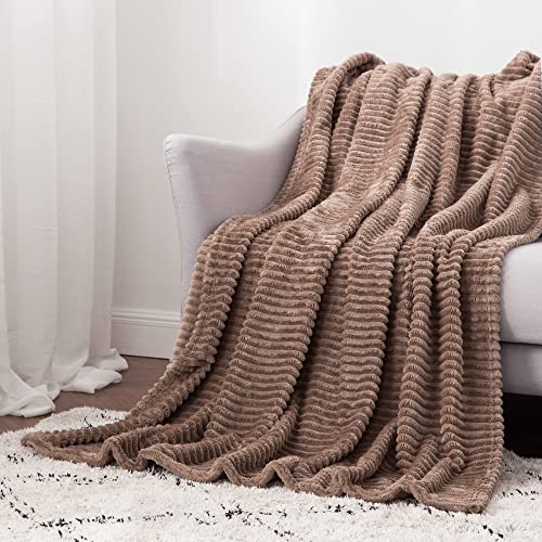 MIULEE Kuscheldecke Fleecedecke Flanell Decke Mit Pompoms Einfarbig Wohndecken Couchdecke Flauschig Überwurf Mikrofaser Tagesdecke Sofadecke Blanket Für Bett Sofa Schlafzimmer Büro 125×150 cm Braun