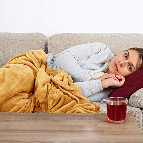 MIULEE Kuscheldecke Fleecedecke Flanell Decke Mit Pompoms Einfarbig Wohndecken Couchdecke Flauschig Überwurf Mikrofaser Tagesdecke Sofadecke Blanket Für Bett Sofa Schlafzimmer Büro 150×200 cm Gelb