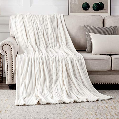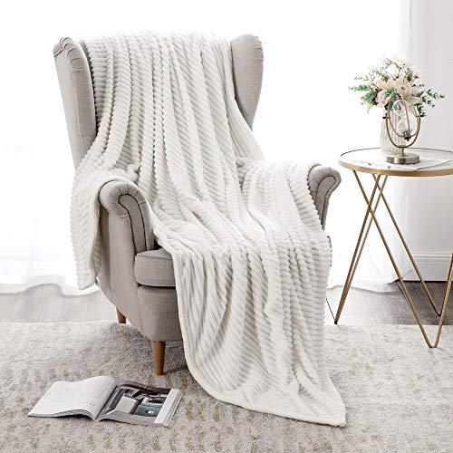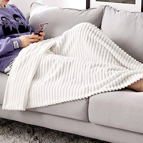 MIULEE Kuscheldecke Fleecedecke Flanell Decke Pompoms Einfarbig Wohndecken Couchdecke Flauschig Überwurf Mikrofaser Tagesdecke Sofadecke Blanket Für Bett Sofa Schlafzimmer Büro 125×150 cm Weiß