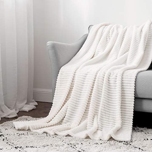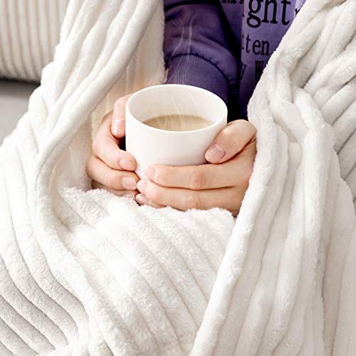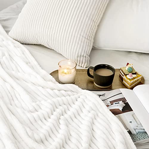 MIULEE Kuscheldecke Fleecedecke Flanell Decke Pompoms Einfarbig Wohndecken Couchdecke Flauschig Überwurf Mikrofaser Tagesdecke Sofadecke Blanket Für Bett Sofa Schlafzimmer Büro 150×200 cm Weiß