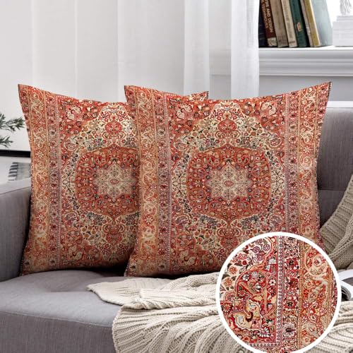 Miuyunya 2er Set Bohemian Kissenbezug 40 x 40 cm Outdoor Kissen Wasserdicht Herbst Exotische Muster Bedruckt Kissenhülle Boho Indisch Landhausstil Dekokissen Sofakissen für Wohnzimmer Garten