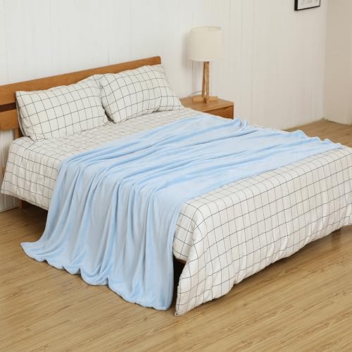 Mixibaby Kuscheldecke Flauschige extra weich & warm Wohndecke Flanell Fleecedecke, Falten beständig/Anti-verfärben als Sofadecke oder Bettüberwurf, Größe:240 cm x 270 cm, Farbe:Babyblau