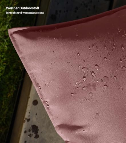 QUALITÄT, DIE BLEIBT! Bezug und Inlett werden in Europa gefertigt. Der Outdoorstoff ist wasserabweisend, strapazierfähig und angenehm weich. Die Kissen sind schadstoffgeprüft nach STANDARD 100 by OEKO-TEX.