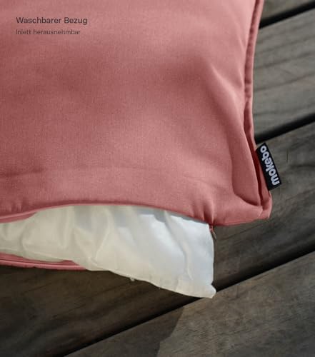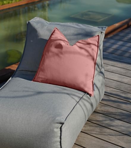 mokebo® Outdoor Kissen ‚Die Auszeit‘, (45x45cm) Terrassendeko, Sofakissen oder Kissen für Balkon, Terasse oder Garten, Dekokissen Bezug aus feinem Outdoorstoff in Koralle