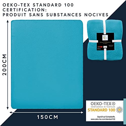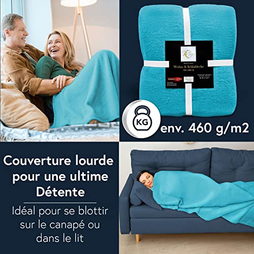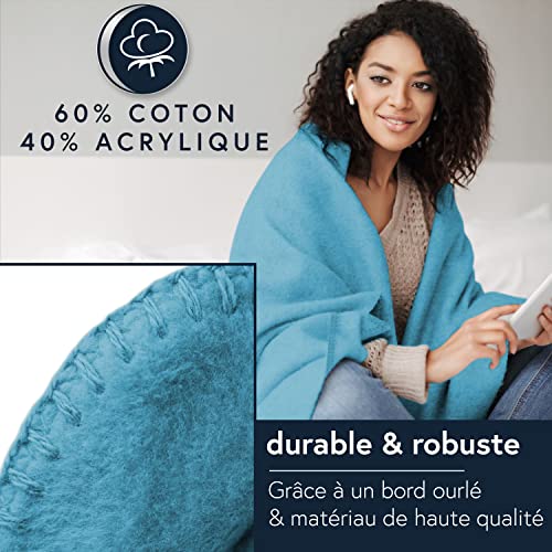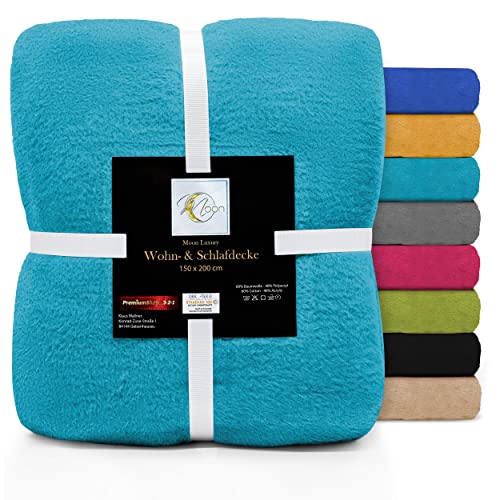 MOON Luxury Kuscheldecke, Wohndecke, Uni Decke aus Baumwoll-Mix (60%/40%) ca. 150×200 cm mit geketteltem Rand (Petrol)