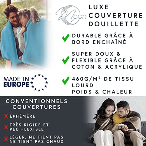 Durch die Mischung von 60 % Baumwolle und 40 % Acryl ist die Wärmedecke super kuschlig weich, flauschig und flexibel. Mit einem Gewicht von ca. 460 g/m² (was ca. 1,380 kg pro Decke macht), ist die Wohndecke in der oberen Gewichtsklasse, was zusätzlich für einen tiefen Schlaf sorgt.