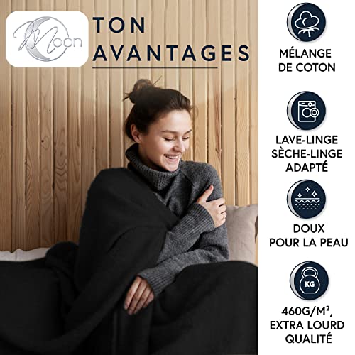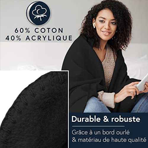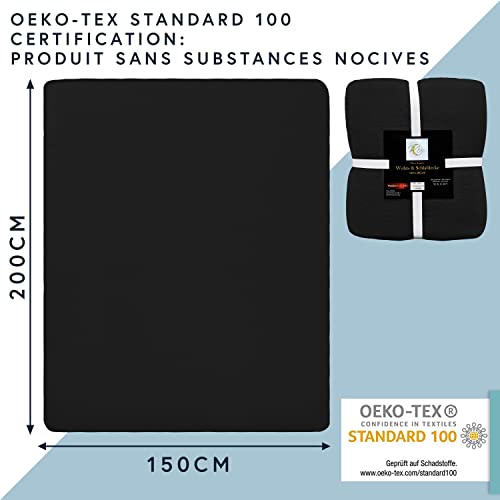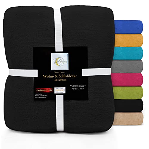 MOON Luxury Kuscheldecke, Wohndecke, Uni Decke aus Baumwoll-Mix (60%/40%) ca. 150×200 cm mit geketteltem Rand (schwarz)