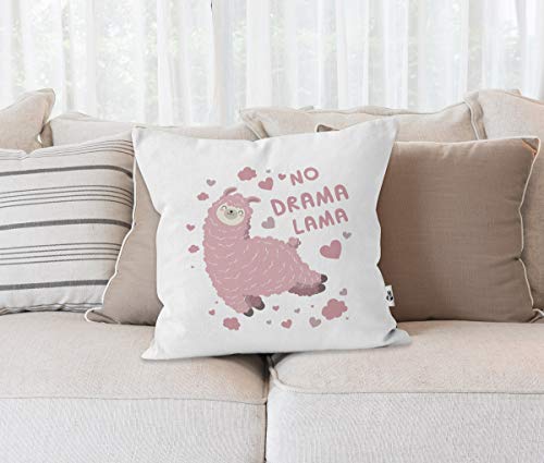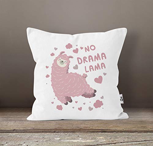 süße Kissen-Sicherheiten mit lustigem Spruch „No Drama Lama“ und Lama Motiv in rosa. Wer liebevoll gestaltete Tier Illustrationen und mit Herzblut produzierte Traktat wie diesen Kissenbezug schätzt wird sich über diese schöne Deko auf seiner Couch garantiert freuen