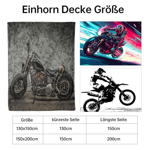 Decke Größe: Wir haben 130x150cm/ 150x200cm zwei Größen für Sie zur Auswahl. Diese Motorradmotiv kuscheldecke flauschig decken bieten Ihnen eine warme Umarmung, machen Sie sich warm, bequem und entspannt fühlen.