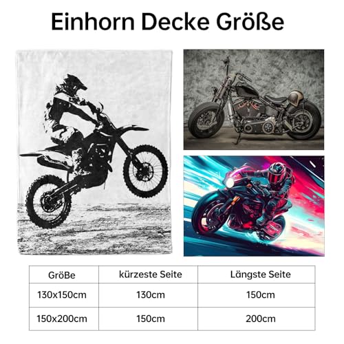 Decke Größe: Wir haben 130x150cm/ 150x200cm zwei Größen für Sie zur Auswahl. Diese Motorradmotiv kuscheldecke flauschig decken bieten Ihnen eine warme Umarmung, machen Sie sich warm, bequem und entspannt fühlen.