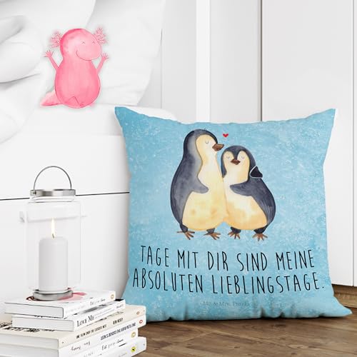 Mr. & Mrs. Panda Kissen Pinguin umarmen – Geschenk, Hochzeitstag, Paar, Liebesgeschenk, Verlobung, Sofakissen, Dekokissen 40×40, Kissenbezüge,