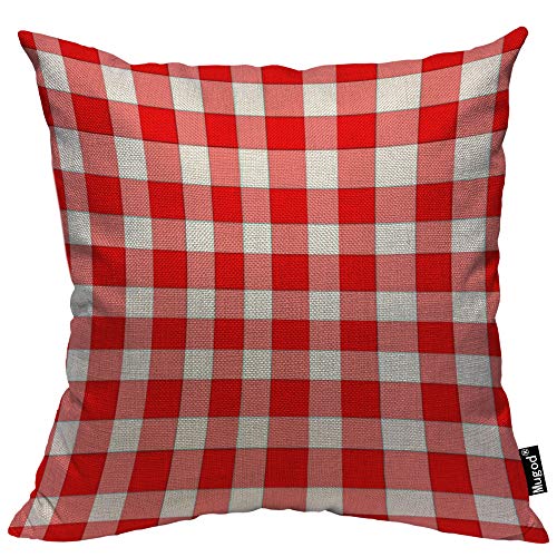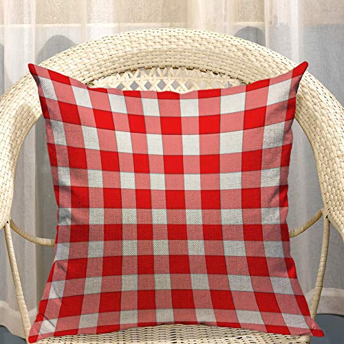 Mugod Kissenbezug, kariert, Karomuster, kariert, Baumwolle, Leinen, anstelle Herren, Sofa, Sessel, Schlafzimmer, Wohnzimmer, 45,7 x 45,7 cm, Rot / Weiß