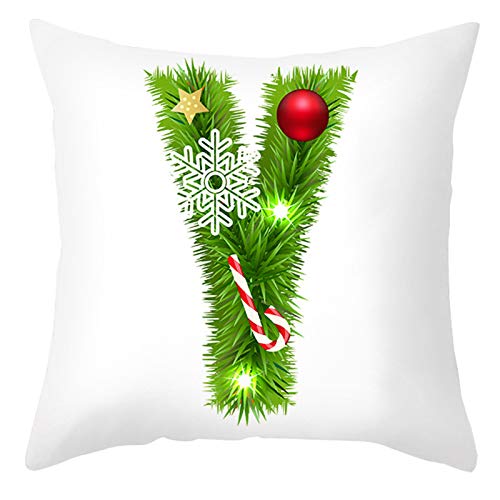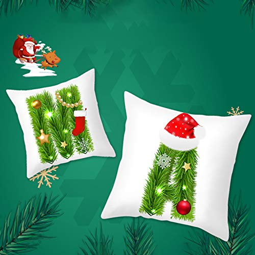 Frohe Weihnachten, dekoratives Dekokissen für Verdeckung, 26 grüne Buchstaben, bedruckter Polyester Samt Kissenbezug für Neujahr, Urlaub, Party, Sofa, Couch