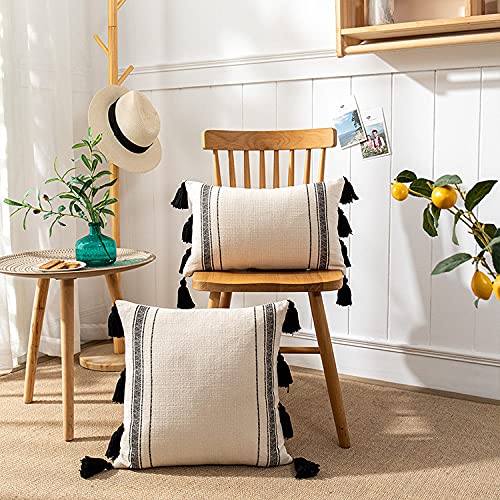 MWMG Kissen Wohnzimmer,Retro Weiß Gestreifte Jacquardquasten Baumwolle Dekorative Kissenbezüge Marokkanisch Minimalistisch 45X45Cm Dekokissen Bezüge Für Sofa Schlafzimmer Wohnzimmer,45X45Cm,4 Stück