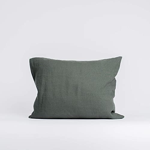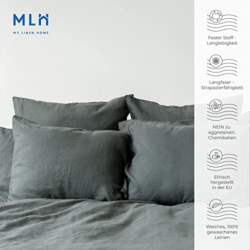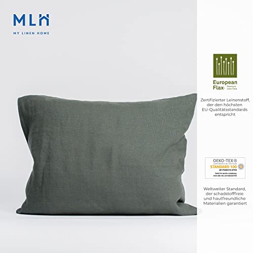 My Linen Home Kissenbezug 40×40 Leinen 2er Set | Hochwertiger Kopfkissenbezug in Dunkelgrün | 100% Stonewashed Leinen Bettwäsche | Made in EU | Antiallergisch & Hautverträglich