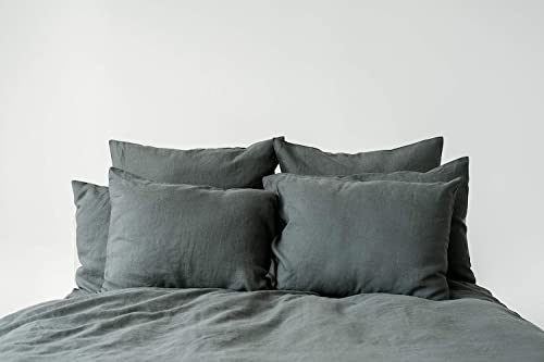 Unsere in Europa aus feinem Leinengewebe handgefertigten Kissenbezüge werden im Zweierset geliefert und verfügen über einen eleganten Umschlagverschluss für Ihren Komfort. Dank der fantastischen Eigenschaften des Leinengewebes sind unsere Kissenbezüge hoch atmungsaktiv, thermoregulierend, hypoallergen und natürlich antibakteriell. Sobald Sie also Ihren Kopf auf dem Kissen ruhen lassen, wird Ihre Haut sanft gepflegt, während Sie die ganze Nacht über Komfort und guten Schlaf genießen.