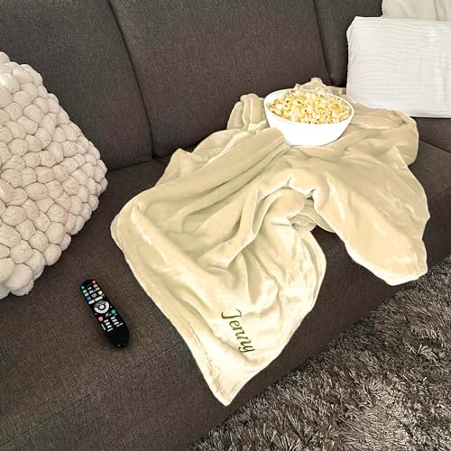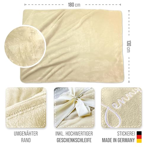 my STITCHERY Decke mit Namen oder Wunschtext Bestickt – Personalisierte Kuscheldecke aus weichem Polyester als außergewöhnliche Geschenkidee (Sand, 180 x 130 cm)