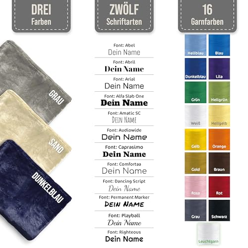 🌈VERSCHIEDENE VARIANTEN – Individualisieren Sie Ihre Kuscheldecke sämtliche nach Ihren Vorstellungen und entscheiden Sie die Gesamtheit verschiedenen Farben, 11 Schriftarten und 17 Garnfarben anstelle die Bestickung die Gesamtheit.