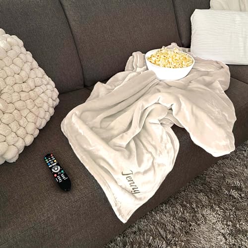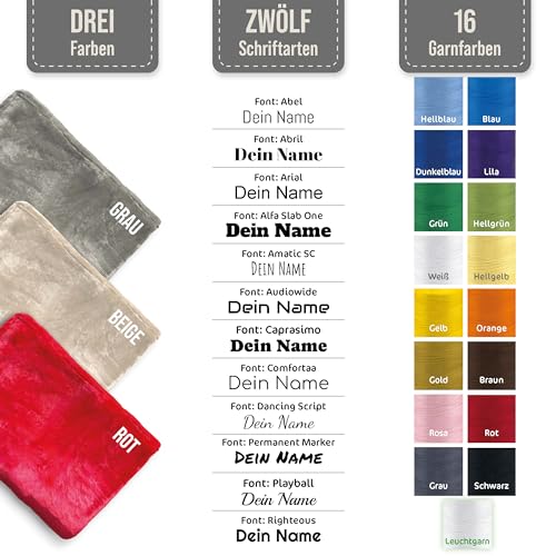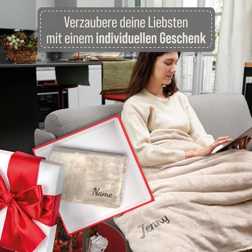 Decke mit Namen oder Wunschtext bestickt – Personalisierte Kuscheldecke leer weichem Polyester Microfleece qua außergewöhnliche Geschenkidee