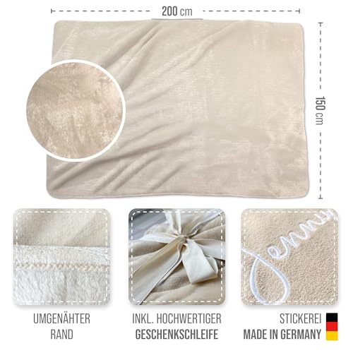 my STITCHERY Decke mit Namen oder Wunschtext Bestickt – Personalisierte Kuscheldecke aus weichem Polyester Microfleece als außergewöhnliche Geschenkidee (Beige, 200 x 150 cm)