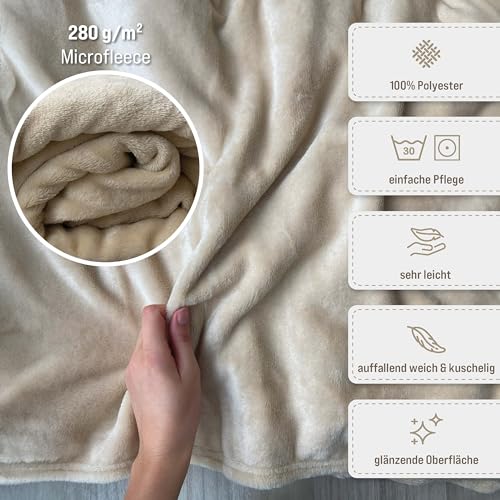 🧸FLAUSCHIG – Die Decke leer 100% Polyester Microfleece (280 g/m²) ist samtig weich, langlebig und pflegeleicht. Mit ihrem umgenähten Rand und großzügigen Maßen von 150 x 200 cm verspricht sie höchsten Komfort.