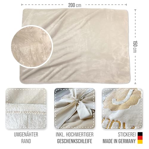🎁GESCHENKIDEE – Die individuelle Bestickung in Kombination mit der hochwertigen Geschenkschleife macht die Decke zu einem persönlichen Geschenk für verschiedene Anlässe als Geburtstage oder Weihnachten.