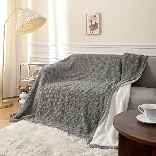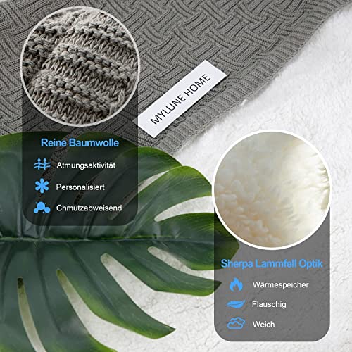 MH MYLUNE HOME Sherpa Decke Baumwolle Strickdecke Öko-Tex 180x200cm 660GSM Dicke Kuscheldecke Flauschig Sofadecke Wohndecke Bettüberwurf Warme Gehäkelte Decke Winter Blanket Hellgrüngrau