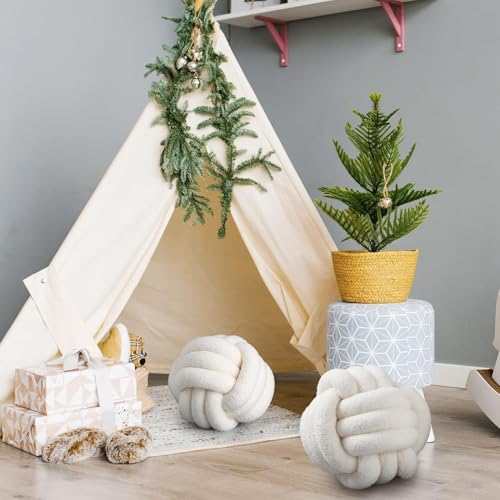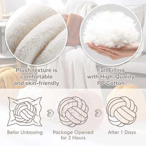 MATERIAL: Unser dekoratives Knotenkissen besteht aus hochwertiger PP-Baumwollfüllung und einem Bezug aus Lammwollstoff, umweltfreundlich und gesund, weich und wird nicht verformt, zart und bequem, flauschig und elastisch, wenn Sie und Ihre Familie dieses Plüschballkissen in Ihren Armen halten, werden Sie sich wohler fühlen