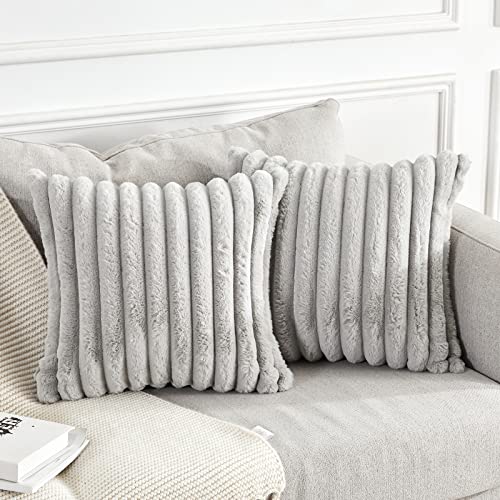 Neelvin 2er Set Kissenhülle Kunstpelz Gemütliche Weiche Gestreifte Dekorative Kissenbezug Kissenbezüge Dekokissen Zierkissenbezug Sofakissen Grün 60×60 cm für Sofa Schlafzimmer