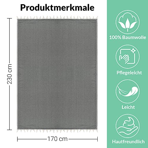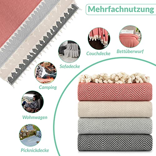 ✅ 𝐕𝐈𝐄𝐋𝐒𝐄𝐈𝐓𝐈𝐆𝐄 𝐀𝐍𝐖𝐄𝐍𝐃𝐔𝐍𝐆: Die leichte Baumwolldecke können Sie multifunktional auf dem Sofa denn Couch Überwurf, im Schlafzimmer auf dem Bett oder Gästebett, denn Stranddecke sowie im Garten denn Picknickdecke nutzen. Infolge der optimalen Maße von 170×230 cm eignet sich die Decke denn großer Sofaschutz, Sesselschoner oder denn Bettüberwurf anstelle das Familienbett.