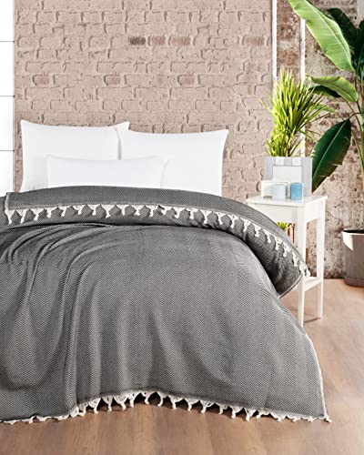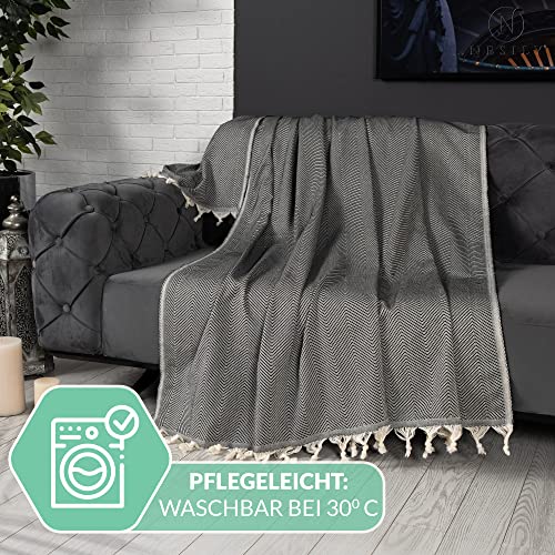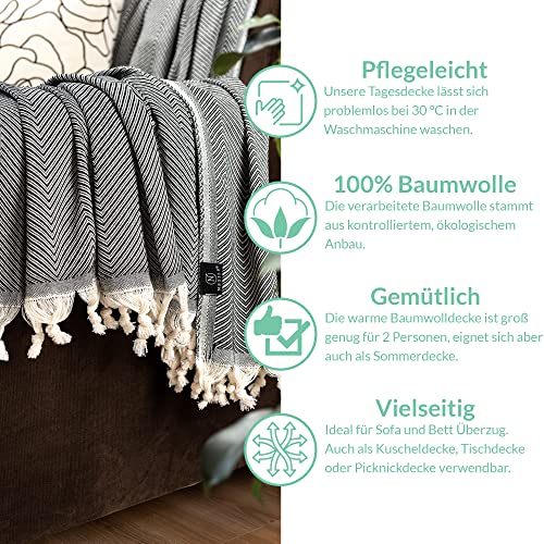 NESILY® Premium Tagesdecke Schwarz aus 100% Baumwolle, Sofa Decke mit Muster, Couch Überzug, Bettüberwurf, Bettdecke für Schlafzimmer, leichte Sommerdecke, Picknickdecke 170×230 cm