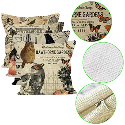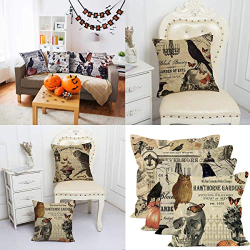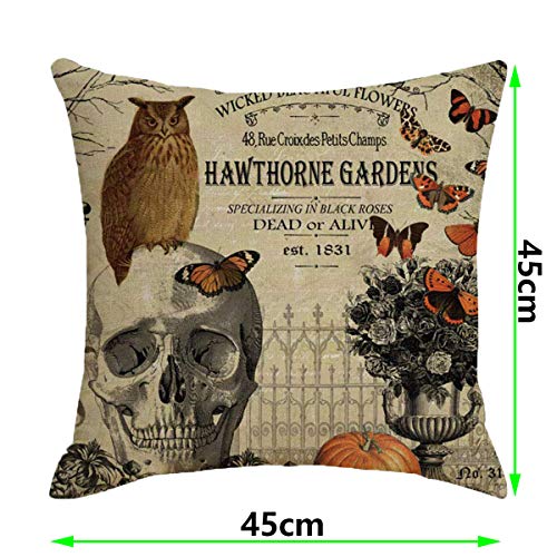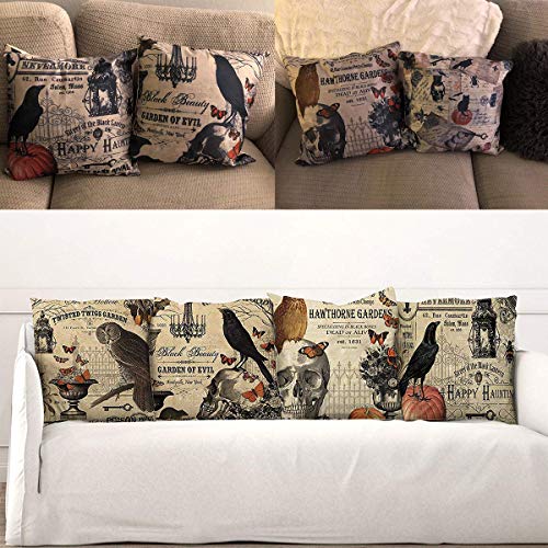 Neusky 4er Set Dekorativ Kissenbezug Kissenhülle Halloween Muster 45 x 45cm Sofa Büro Dekor Kissenhülle aus Baumwoll und Leinen (Skelett-Halloween)