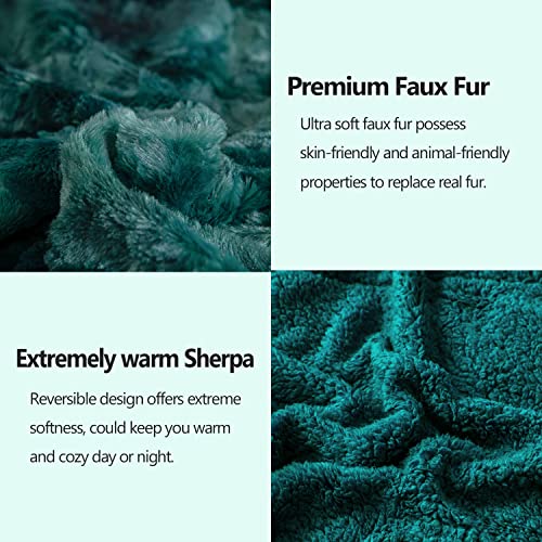 NEWCOSPLAY Superweicher Kunstfell Kuscheldecke hochwertige Sherpa Rückseite Warmer und gemütlicher Sofaüberwurf Decke für Couch und Bett(Dick-Dunkles Blaugrün, 130 x 150 cm)