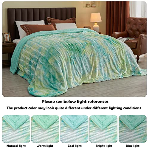 NEWCOSPLAY Superweicher Kunstfell Kuscheldecke hochwertige Sherpa Rückseite Warmer und gemütlicher Sofaüberwurf Decke für Couch und Bett(Dick-Mehrfarbig Grün, 130 x 150 cm)