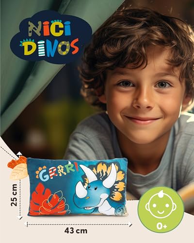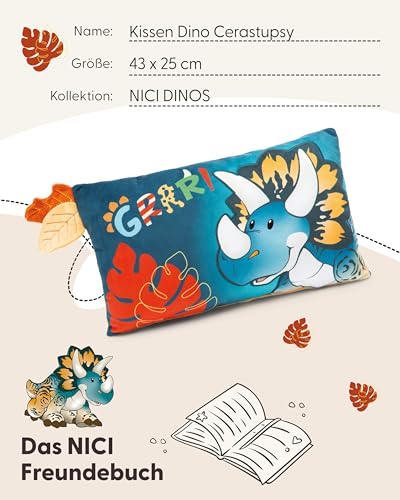 KUSCHELIG WEICH: Das hochwertige NICI Kissen mit der detaillierten alphabetisches Zeichen-Plüschapplikation unseres Dino Cerastupsy sowie ein attraktiver Design-Beule begeistert denn kuschelige Kopfunterlage zugunsten Bett, Sofa & Reisen jeden Dino-Fan